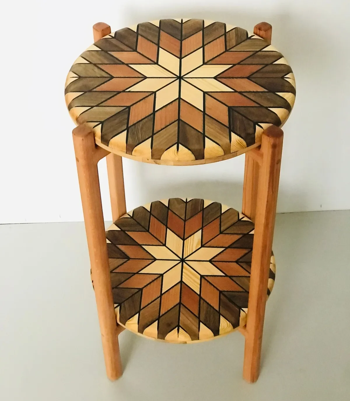 Ahşap Yan Sehpa – Geometrik Yıldız Motifli Tasarım